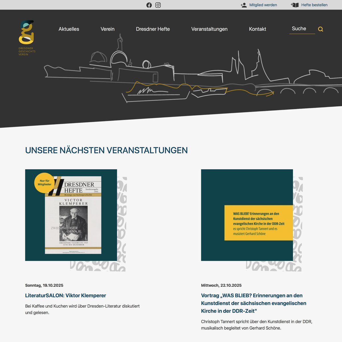 Für den Dresdner Geschichtsverein e. V. habe ich die Website konzipiert und technisch umgesetzt. Ziel war es, die Arbeit des Vereins zeitgemäß darzustellen und Inhalte zur Dresdner Stadtgeschichte übersichtlich und dauerhaft zugänglich zu machen. Die Umsetzung erfolgte unentgeltlich als Beitrag zur Unterstützung der ehrenamtlichen Vereinsarbeit.